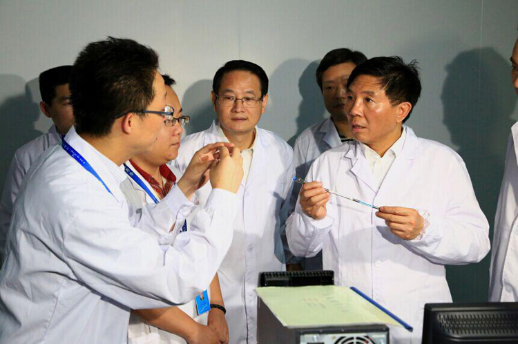 湖南省委副書(shū)記孫金龍(右一)在了解公司先進(jìn)的科研設備及技術(shù)操作流程