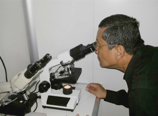 柬埔寨馬德望省省長(cháng)CHAN SOPOL在旺康檸檬酸廠(chǎng)菌種室用顯微鏡觀(guān)察菌種