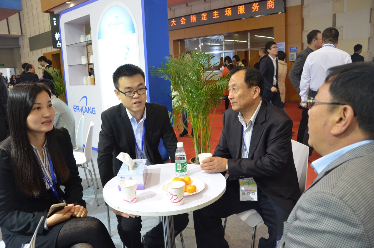 在爾康展臺,每個(gè)交流桌上都擺放著(zhù)精心準備的水果,讓客戶(hù)在輕松愉快的氛圍中了解爾康制藥的產(chǎn)品,感受公司的企業(yè)文化?!斑@次展會(huì )看得出來(lái)爾康非常用心,員工接待我們非常熱情,感覺(jué)很好!我這次就是專(zhuān)程過(guò)來(lái)了解爾康的新品種的,技術(shù)含量高,不錯!”山東魯抗醫藥股份有限公司董事長(cháng)郭琴高度評價(jià)了爾康制藥本次展會(huì )上的表現。