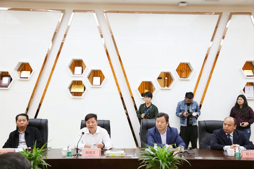 杜家毫省長(cháng)(右一)與公司董事長(cháng)帥放文親切交談