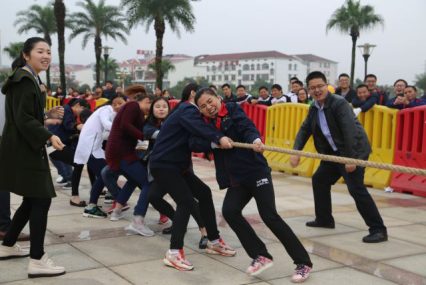隨著(zhù)哨聲一響,拔河比賽正式開(kāi)始,爾康的運動(dòng)員們雙手握緊長(cháng)繩,咬緊牙關(guān)向后拉,為了把握節奏形成合力,運動(dòng)員們口中一起高呼著(zhù)“一二、一二”,和場(chǎng)上的加油助威聲遙相呼應。每向后贏(yíng)得一步,運動(dòng)員們都拼盡全力,經(jīng)過(guò)同心協(xié)力頑強拼搏,爾康制藥男子隊在36支隊伍中成功晉級前八強。