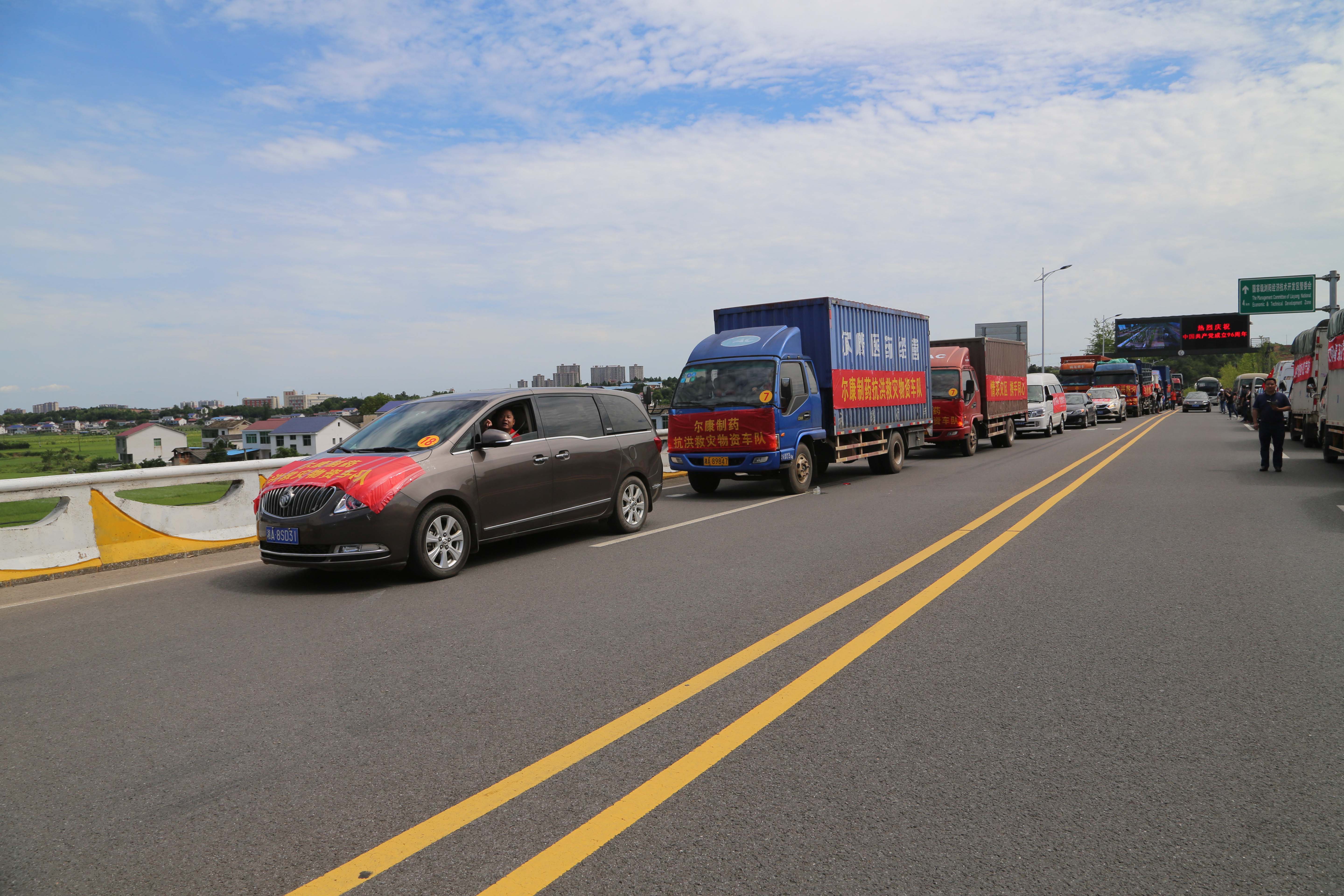爾康制藥車(chē)隊到達位于瀏陽(yáng)市政府的受捐儀式現場(chǎng)