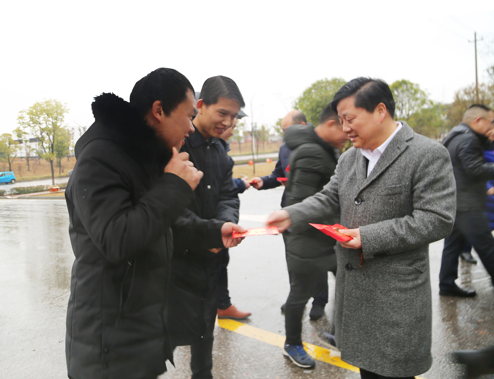 帥放文董事長(cháng)給員工發(fā)放新年利是