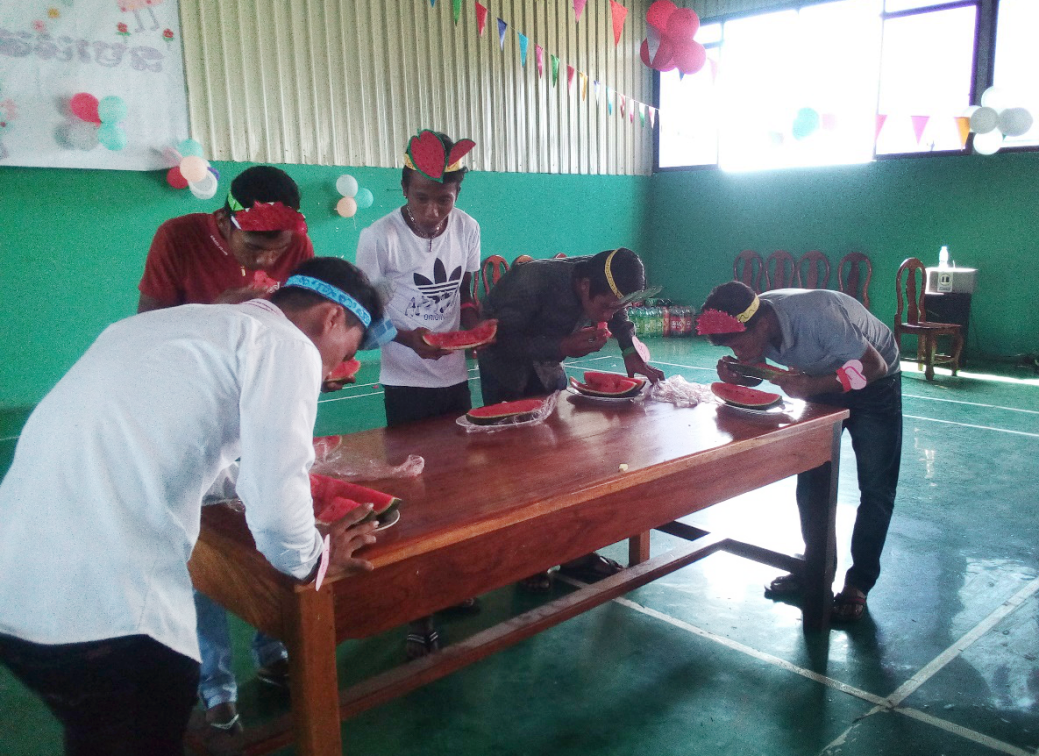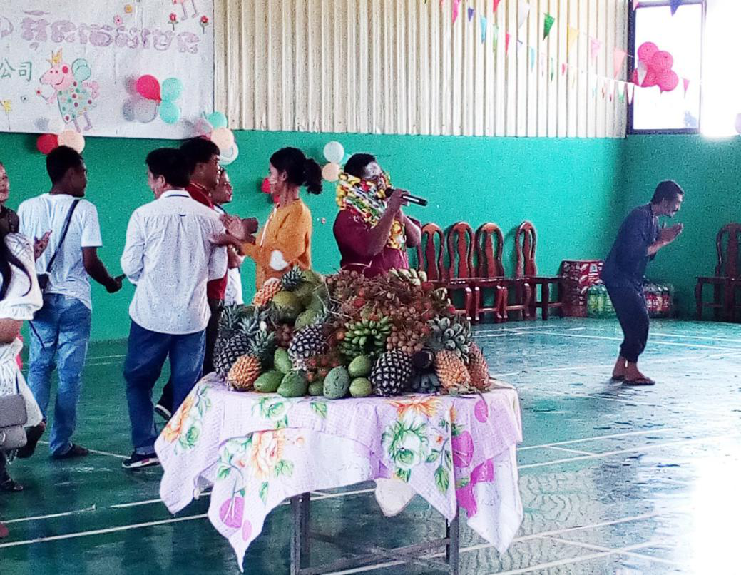 表彰會(huì )過(guò)后,新年慶?;顒?dòng)正式開(kāi)始。柬籍員工和中籍員工都分別上臺演唱拿手歌曲,隨曲伴舞,還進(jìn)行了柬埔寨人民喜愛(ài)的吃西瓜比賽和吃香蕉比賽,現場(chǎng)其樂(lè )融融。