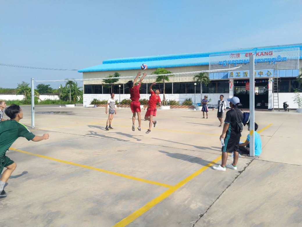 此外,公司還舉辦了排球比賽和拔河比賽。公司柬籍員工組成了兩支隊伍,頂著(zhù)烈日在公司的排球場(chǎng)上盡情揮灑汗水,進(jìn)行了一場(chǎng)精彩的球賽。