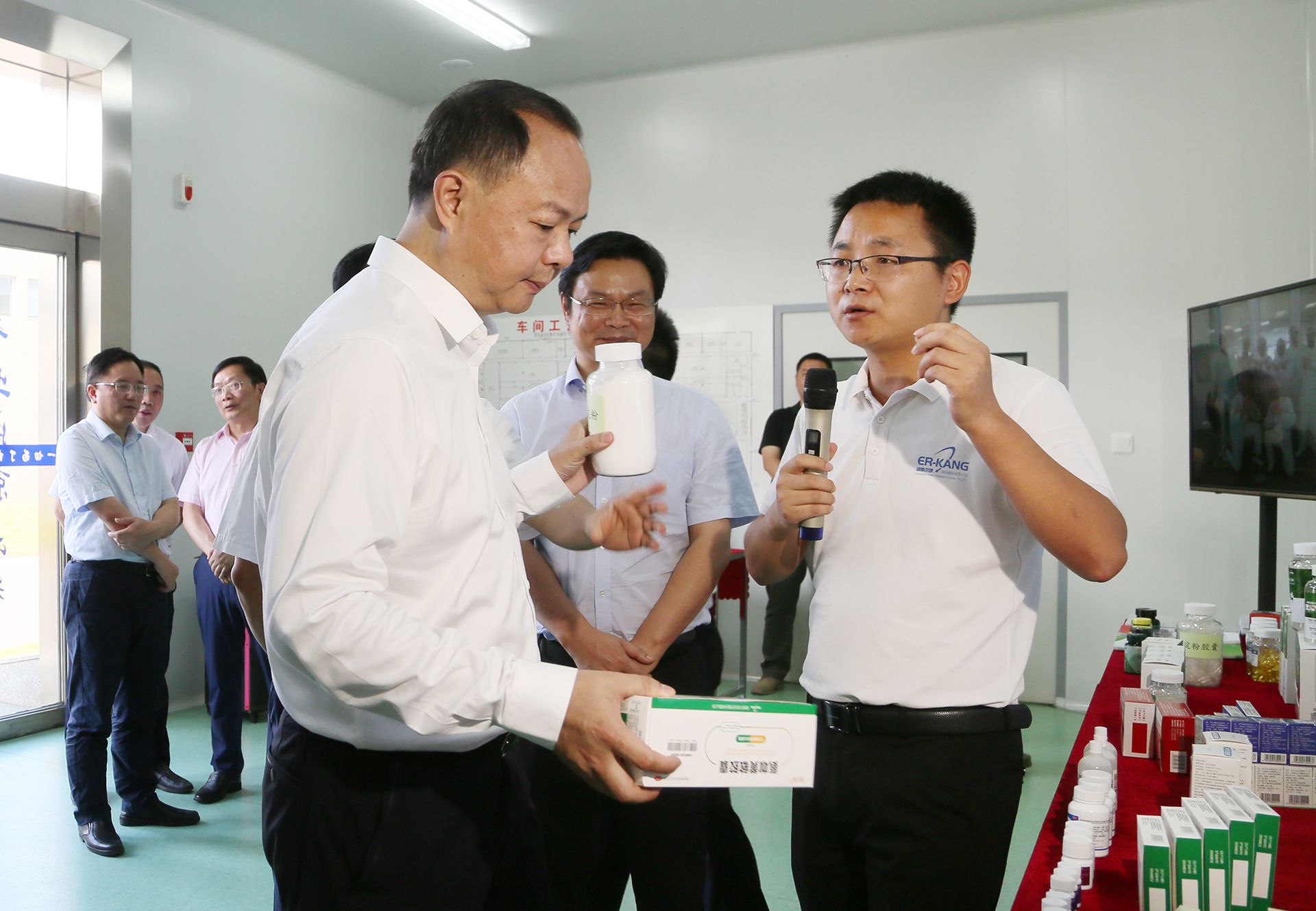 9月3日,長(cháng)沙市委副書(shū)記、市長(cháng)、湖南湘江新區黨工委書(shū)記鄭建新一行蒞臨爾康制藥考察調研。長(cháng)沙市委常委、瀏陽(yáng)市委書(shū)記黎春秋,長(cháng)沙市副市長(cháng)李蔚,瀏陽(yáng)市委副書(shū)記、市長(cháng)吳新偉,瀏陽(yáng)經(jīng)開(kāi)區黨工委副書(shū)記、管委會(huì )主任談文昌等領(lǐng)導陪同調研。